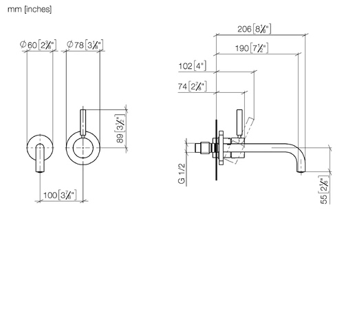 - uitsteek 190 mm