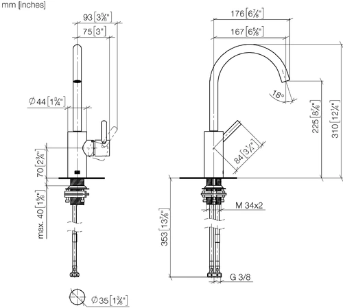 • Hoogte kraan 310 mm