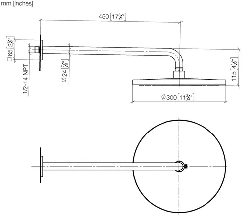 Dornbracht regendouche met wandaansluiting, projectie 450mm, Ø 300mm, FlowReduce