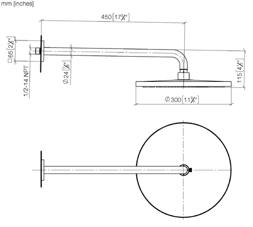 Dornbracht regendouche met wandaansluiting, projectie 450mm, Ø 300mm