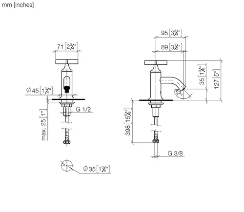 Dornbracht VAIA koudwaterkraan, kruisgreep, uitsteek 89mm