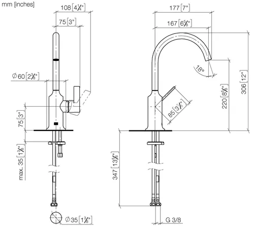 Dornbracht VAIA wastafels zonder afloop, projectie 167mm