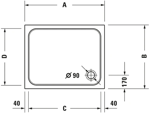 Duravit D-Code douchebak, 1000x900mm, rechthoekig, inbouwversie