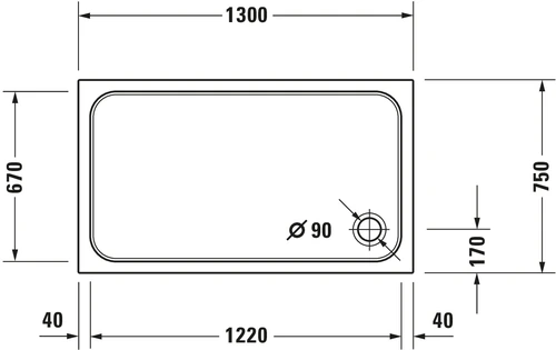 Duravit D-Code douchebak, 1300x750mm, rechthoekig, inbouwversie