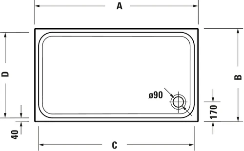 • Afvoerpositie: hoek (hoekafvoer Ø90 mm)