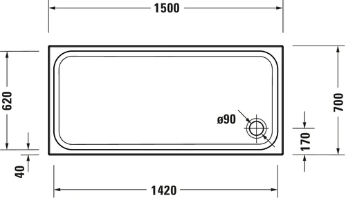 Duravit D-Code douchebak, 1500x700mm, rechthoekig, inbouw uitvoering