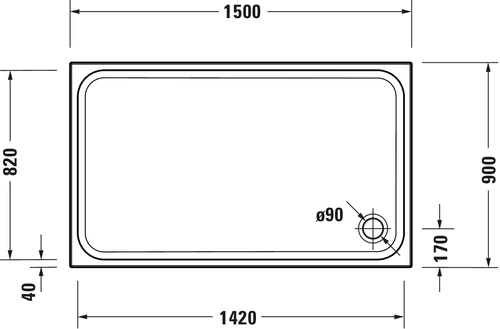 Duravit D-Code douchebak, 1500x900mm, rechthoekig, inbouw uitvoering
