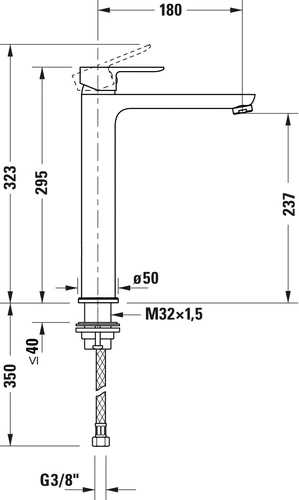 Duravit D-Code eengreeps wastafelmengkraan XL FreshStart en Minusflow, vrijstaand
