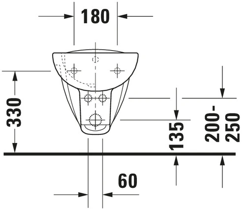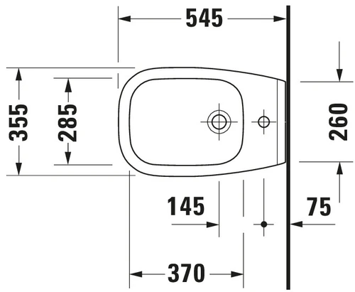 Duravit D-Code wandbidet, met kraangat, met overloop, 355x545x350mm, wit hoogglans