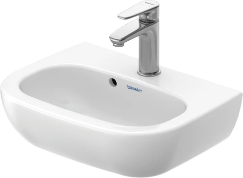Duravit D-Code wastafel, met kraangat, met overloop, 450x340x145mm, wit hoogglans