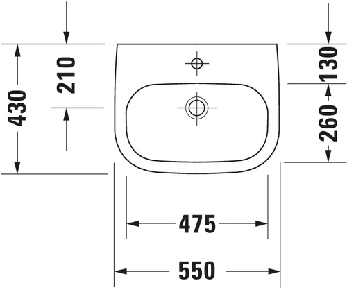 Duravit D-Code wastafel, zonder kraangat, zonder overloop, 550x430x175mm, wit hoogglans