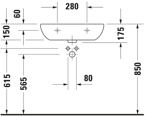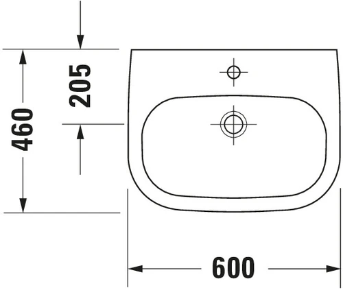 Duravit D-Code wastafel, zonder kraangat, zonder overloop, 600x460x175mm, wit hoogglans