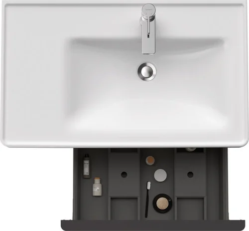 Duravit D-Neo, wastafel voor wandmontage, breedte 784 x diepte 452mm, 1x uittrekbaar, 1x legplankelement aan de zijkant (links), met greep
