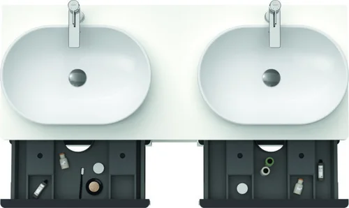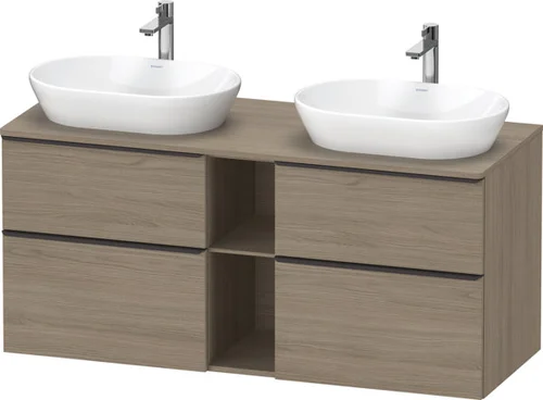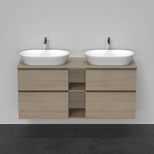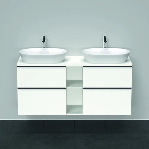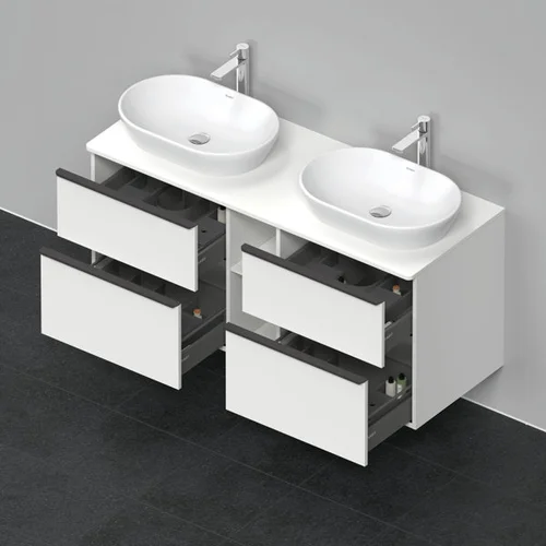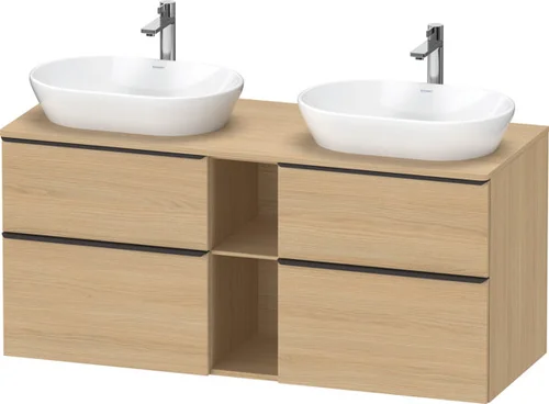 Duravit D-Neo, wastafel voor wandmontage (uitsparing aan beide zijden), breedte 1400 x diepte 550mm, 4x laden, 1x open vak, met greep