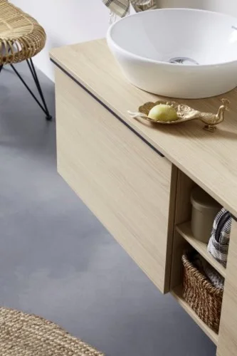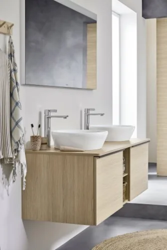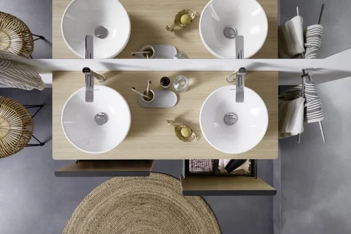 - 1x wandhangend badmeubel (aan beide zijden voorzien van een uitsparing voor de wastafel)