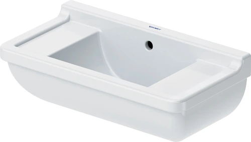 Duravit Starck 3 wastafel, 500x260mm, met overloop, 2 kraangaten links en rechts voorgeperforeerd