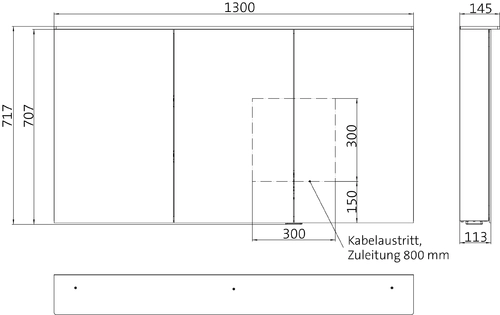 emco flat 2 design LED verlichte spiegelkast met lichtpaneel, 3 deuren, 1300x711x145mm