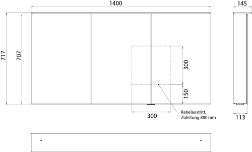 emco flat 2 design LED verlichte spiegelkast met lichtpaneel, 3 deuren, 1400x711x113mm