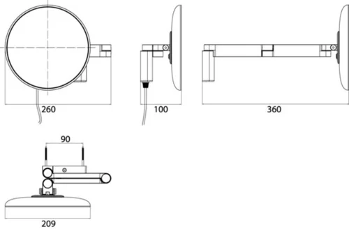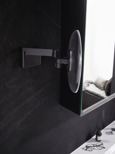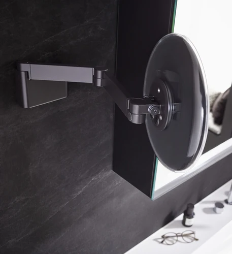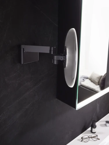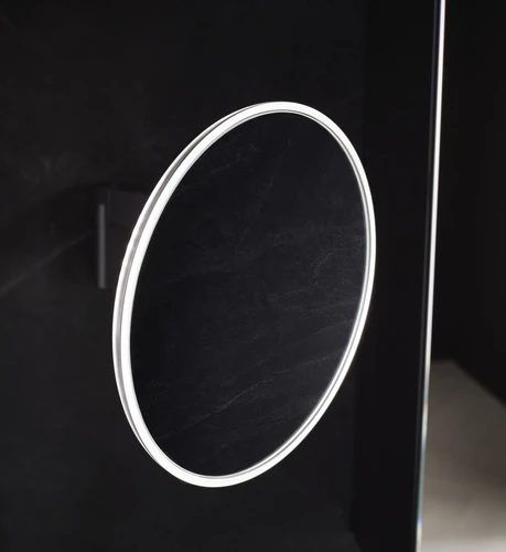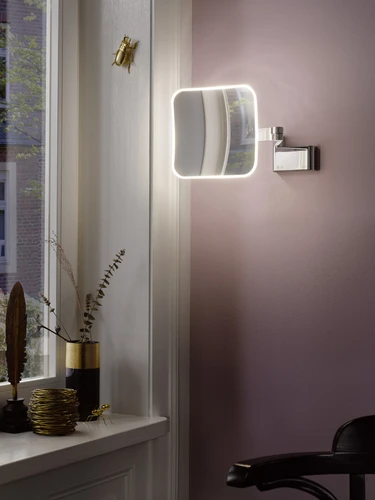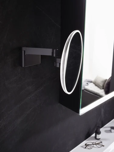 emco LED scheer- en make-upspiegel, wandmodel, dubbel scharnierende arm, 5x vergroting, rond, spiraalkabel en stekker