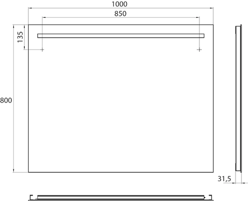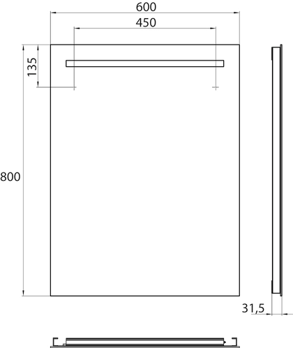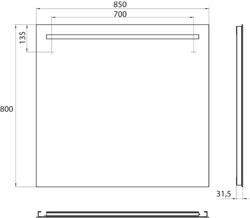 emco lichtspiegels MI 100 met horizontale lichtuitsparing, hoogte 800 mm