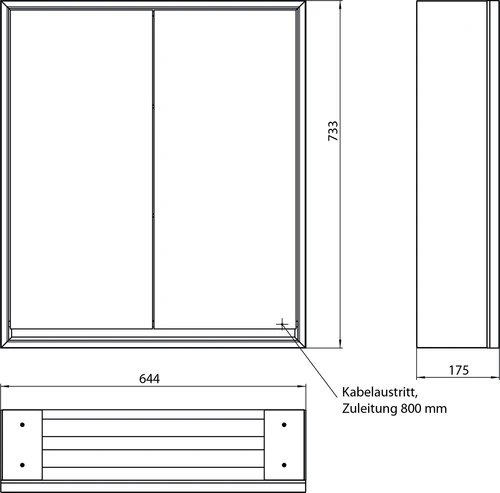 - Afmetingen (BxDxH): 644 x 175 x 733 mm