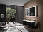 - Achterwand van gespiegeld glas, zijwanden van zwart glas