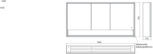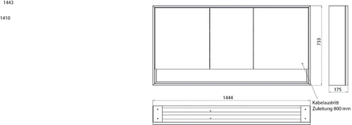 - Afmetingen (BxDxH): 1444 x 175 x 733 mm