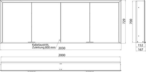 - Afmetingen (BxDxH): 2030 x 167 x 729 mm