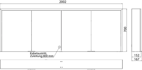 - Afmetingen (BxDxH): 2002 x 167 x 700 mm