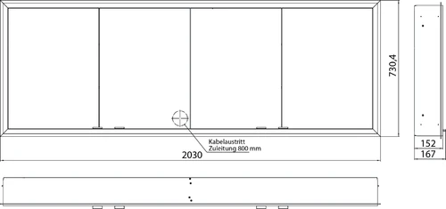 - 1 x prime verlichte spiegelkast, 2000 mm, inbouwmodel, IP20