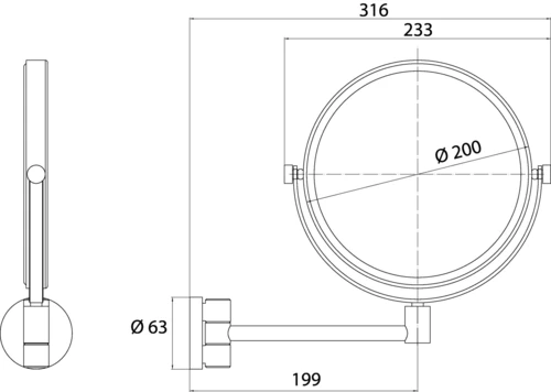 emco pure scheer- en make-up spiegel, enkelvoudige arm, 200mm, chroom