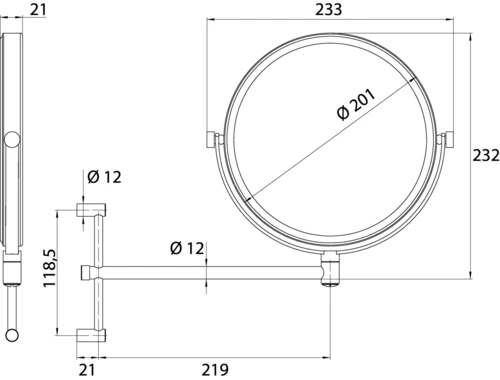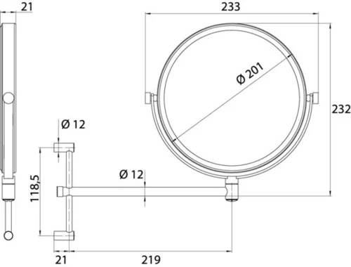 emco pure scheer- en make-up spiegel, hoogte verstelbaar, enkele arm, 190mm, chroom