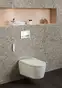 - Wateraansluiting aan de linkerzijde verborgen achter wc-keramiek