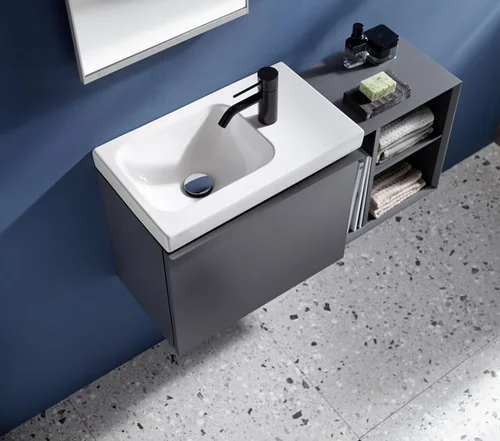Geberit iCon Light handdouche, 53 cm x 31 cm, met kraangat links, zonder overloop, planchet links, 501833