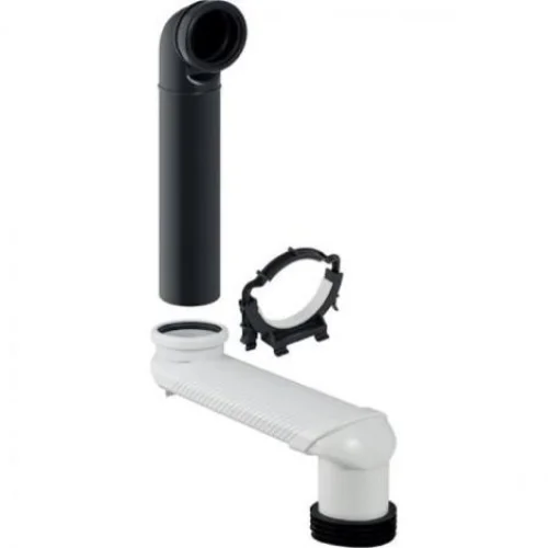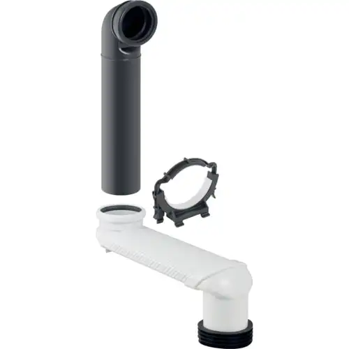 Meegeleverd wordt een verbindingspijp van PE-HD met een diameter van 90 mm, die ervoor zorgt dat de wc-uitgang stevig is aangesloten op de vloerafvoer. De set bevat ook een verbindingsbocht van 90 mm van ABS, een slijtvast en duurzaam materiaal dat zorgt voor een veilige en nauwkeurige verbinding.