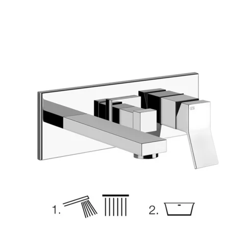 Gessi Rettangolo K, inbouw douchegarnituur voor inbouw eengreepsmengkraan met baduitloop, 2-weg omstel, open uitloop op inbouwdeel, na ombouw baduitloop, 735