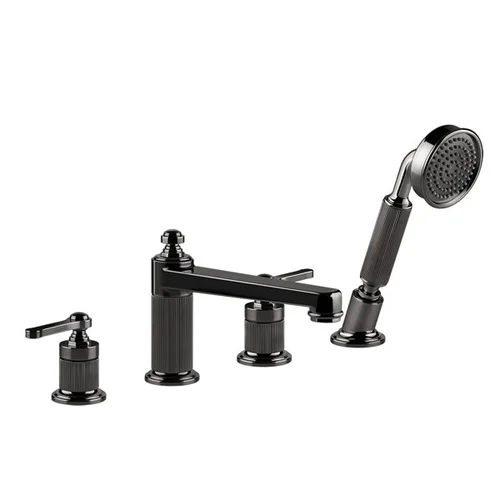 Gessi Venti20 4-gats badmengkraan, met uitloop, omstel, slang en handdouche, 2-weg, 190mm projectie, badrandmontage