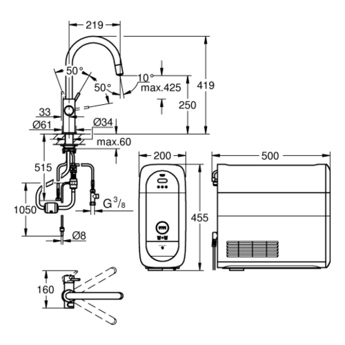 - Weergave en bewaking van verbruiksgegevens, filter- of CO2-capaciteit via GROHE Ondus App Push Notification