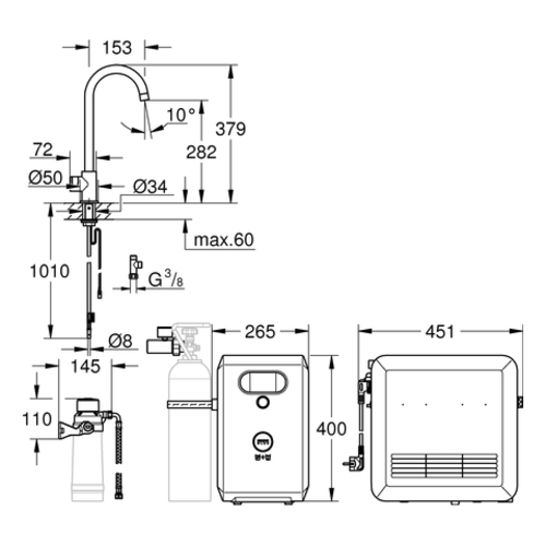 - Weergave en controle van verbruiksgegevens, filter- of CO2-capaciteit via GROHE Ondus App
