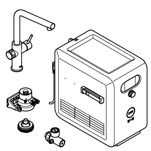 - Het GROHE Blue filter, de 2 kgCO2-fles (40 423 000) en het reinigingspatroon (40 434 001) die nodig zijn voor de inBetterijfstelling zijn niet inbegrepen en moeten apart worden besteld.
