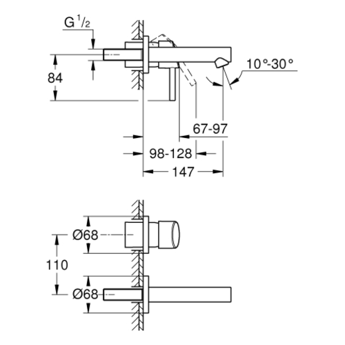 Grohe Concetto 2-gats inbouw wastafelmengkraan, projectie 147mm