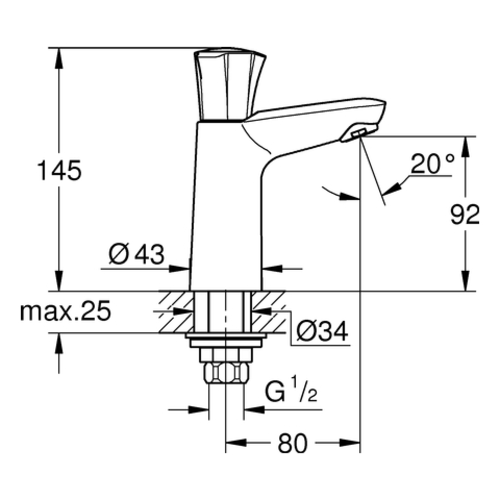 Grohe Costa koudwaterkraan, uitsteeksel 80mm, hoogte 145mm