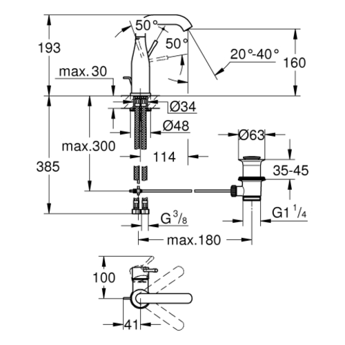 Grohe Essence monoknop wastafelmengkraan, M-grootte, draaibaar, 114mm projectie, met verzonken waste