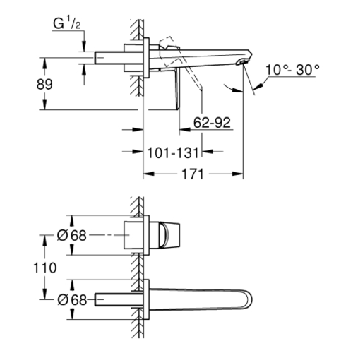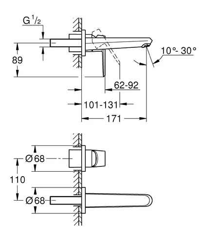 - Insteek: 110 mm