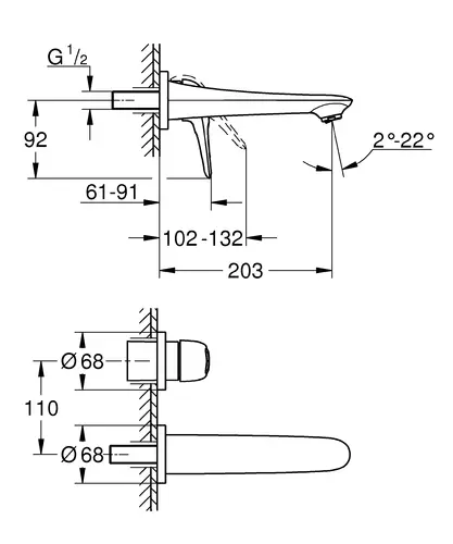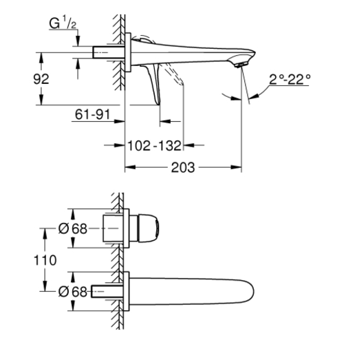 Grohe Eurostyle 2-gats wastafelmengkraan, projectie 203mm, verborgen installatie, zonder afloop, open hendel