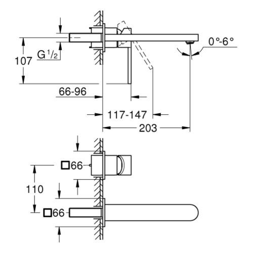 Grohe Plus 2-gats wastafelmengkraan, projectie 203mm, inbouw installatie, zonder afloop