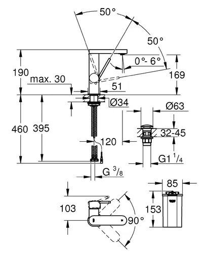 Grohe Plus monoknop wastafelmengkraan, M-grootte, uitval 120mm, met digitaal display, draaibaar, PUSH waste, batterijvoeding