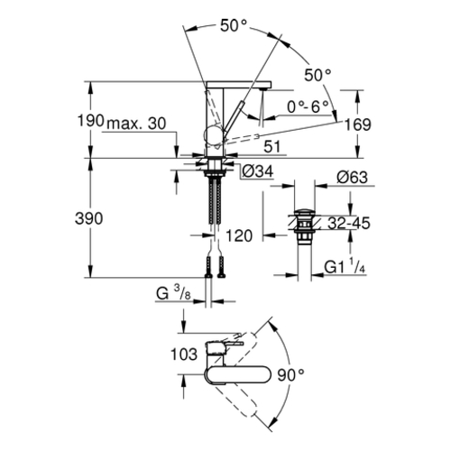 Grohe Plus monoknop wastafelmengkraan, M-maat, 120 mm uitval, draaibaar, push-open PUSH waste