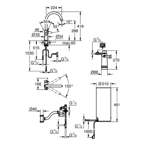 Grohe Red Duo mengkraan en boiler maat L, C-uitloop