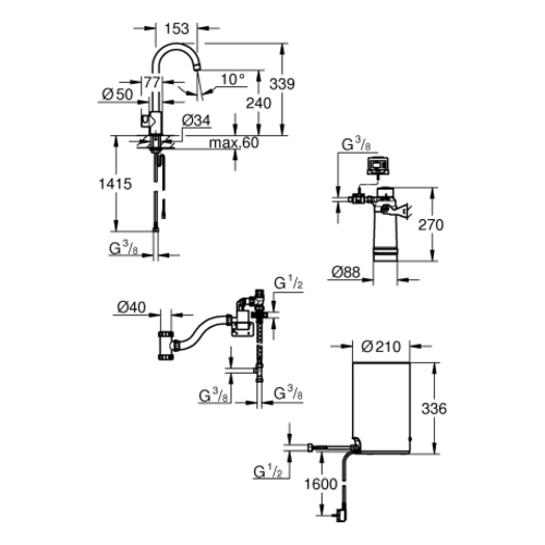 GROHE Red Mono zuilventiel en boiler maat M, C-uitloop